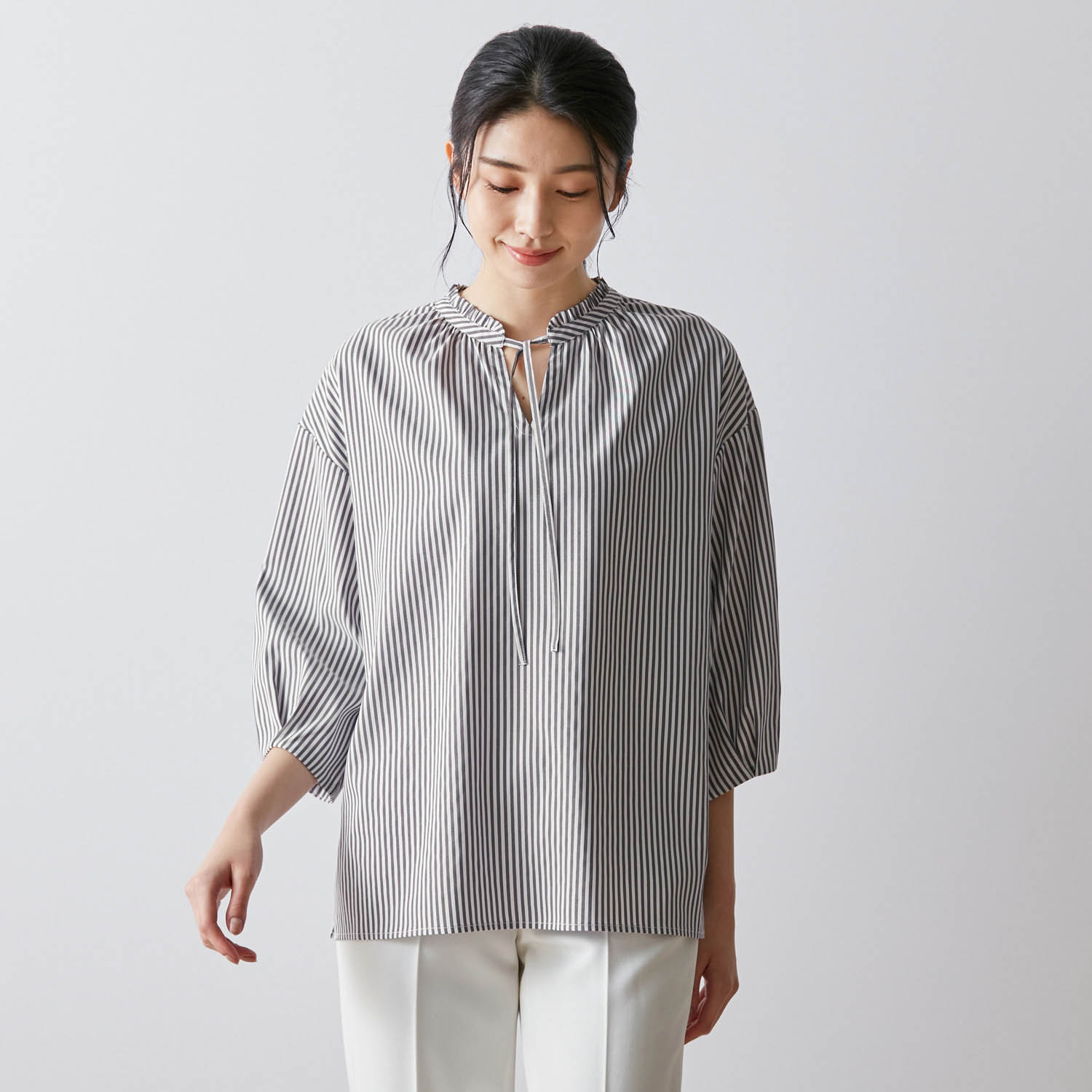 軽やかさと知的さ、清潔感のある印象に仕上がるブラウスですが、