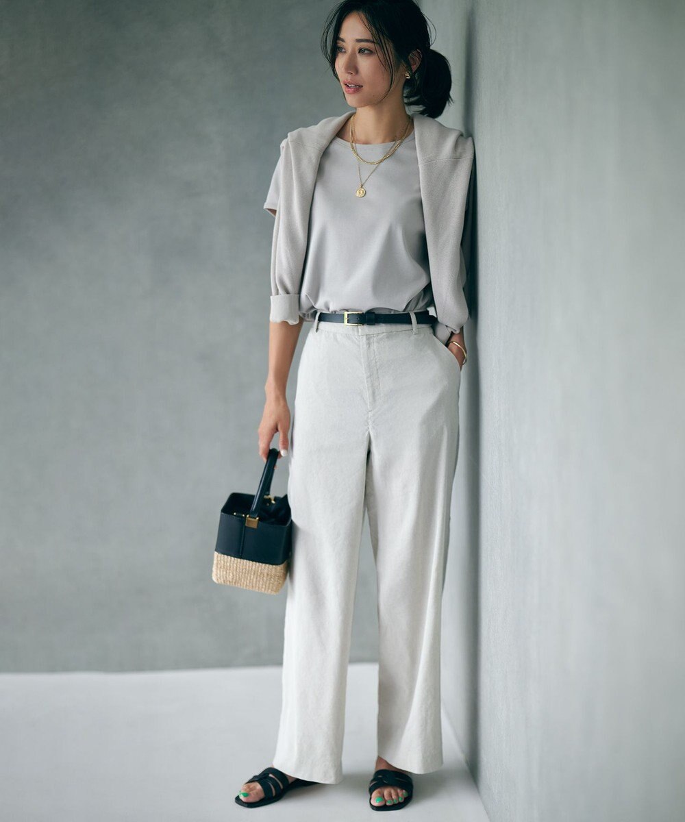 【蛯原友里さん着用/洗える】リネンレーヨンストレッチ ワイド パンツ![]()