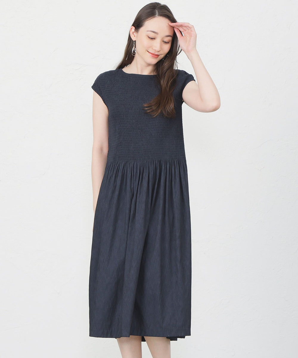 ジャケットやカーディガンを合わせたフェミニンな着こなしも楽しめる、使い勝手の良いワンピ-ス。