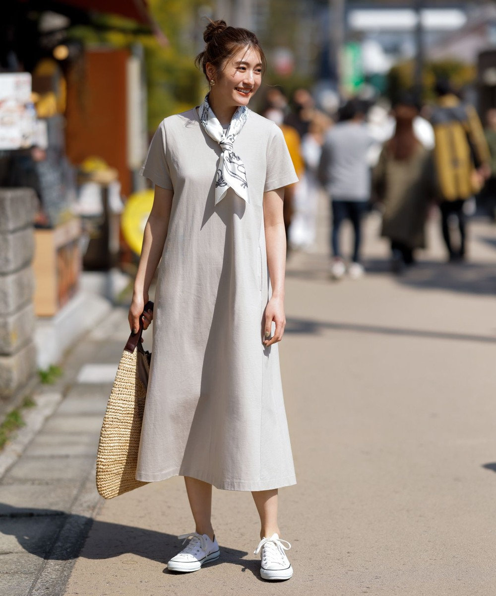 ゆったりと着られるリラックス感あるデザインながら、素材はきれいめなので大人女性もマッチしやすいのが特徴。