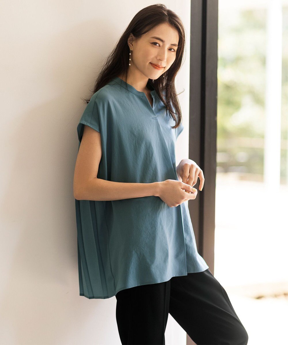 バックのプリーツがコーデを華やかにしてくれるプリーツブラウス。