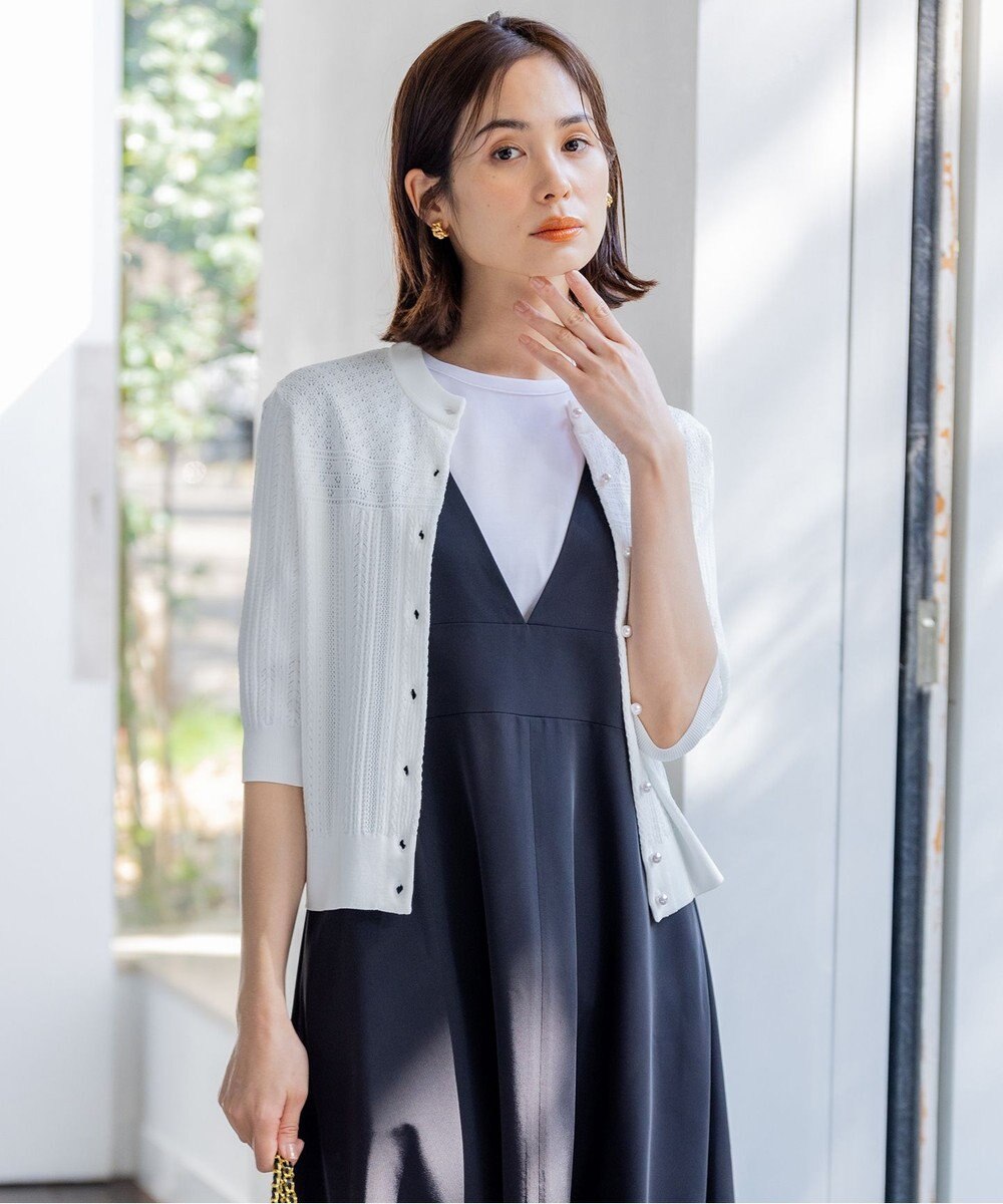 パールボタンが上品なニットカーディガン