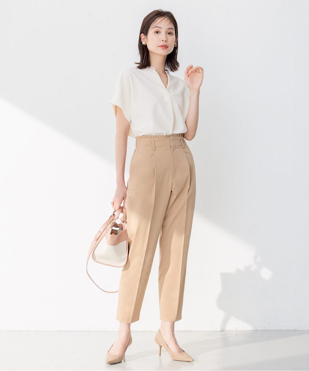 ハイウエストでお腹のぽっこり感を目立ちにくくしてくれながら、太もも周りもカバーしてくれるテーパード パンツ。
