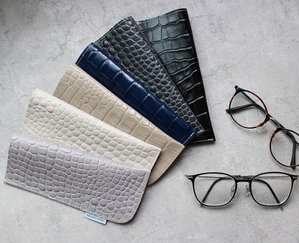 ワンランク上のクロコ型押しレザーを使用した、見惚れるほど美しい眼鏡ケースです。