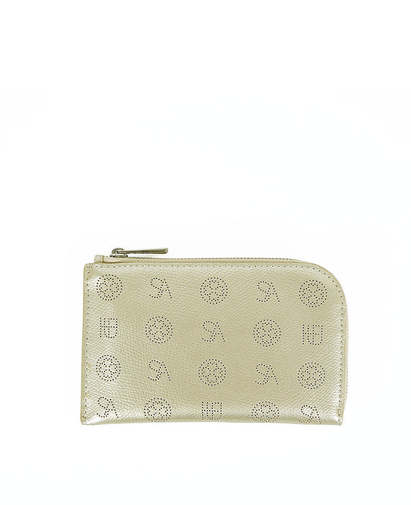 パンチングのモノグラムがおしゃれな、ファスナーミニ財布です。