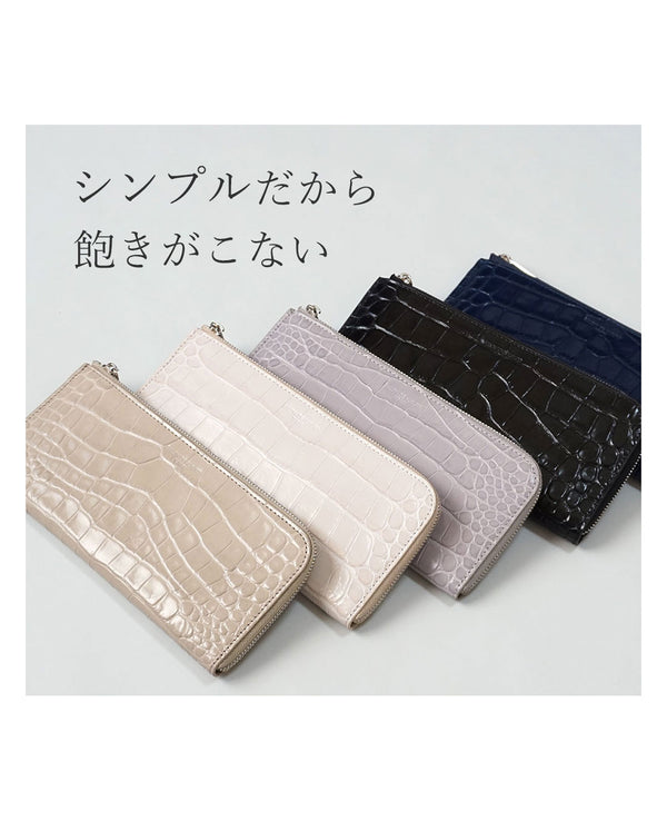 世界基準「LWG」認定イタリア名門タンナーが仕立てたクロコ型押しレザー長財布です。