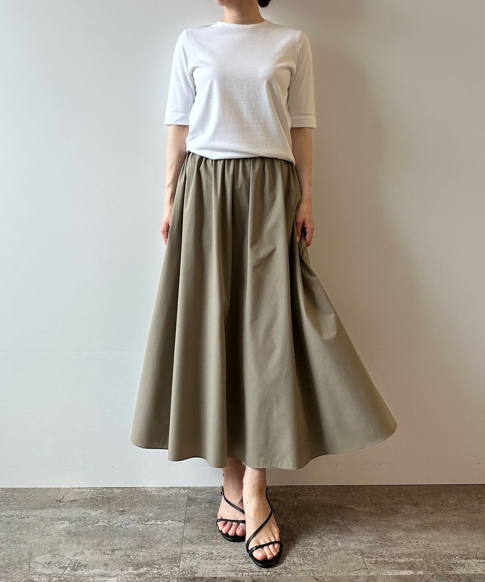 ライトウェイトのコットンツイル素材でできたカジュアルなAラインスカートです。