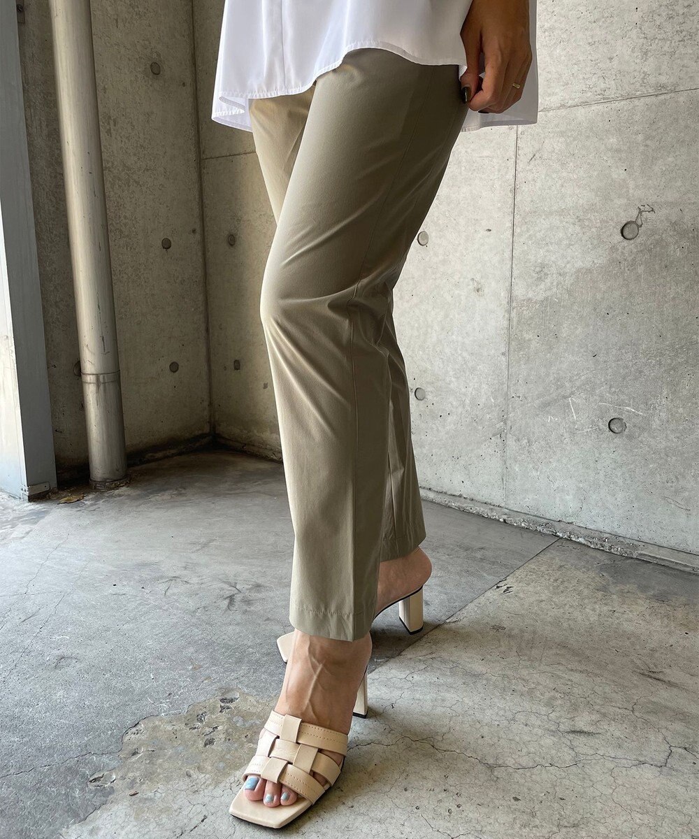ドライな質感とウエストゴムで楽ちんな履き心地のパンツです。